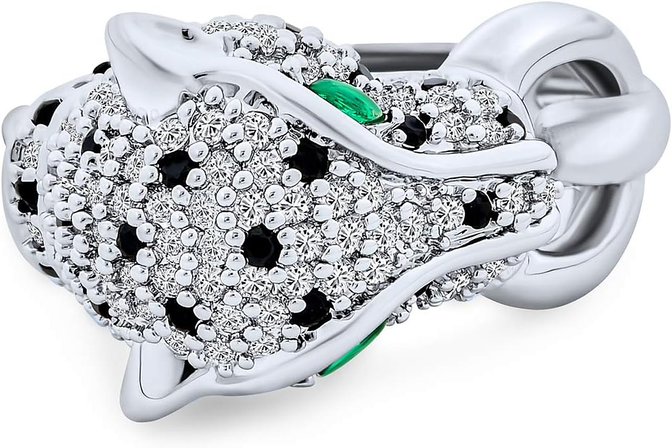 Green Eye Black White Cubic Zirconia CZ Fashion Leopard Panther Cat Statement By