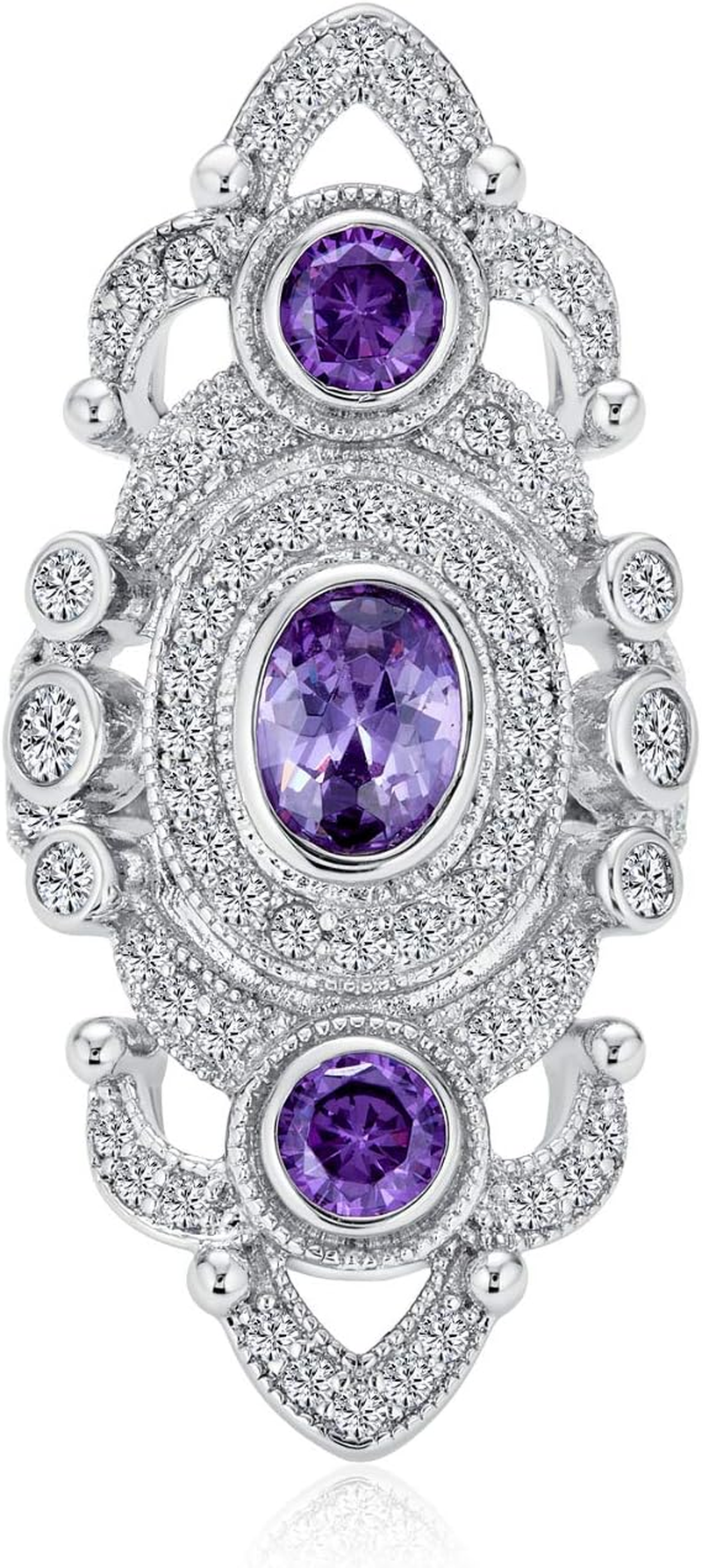 Vintage Style Filigree Purple Cubic Zirconia Armor Full Finger Statement Ring Si